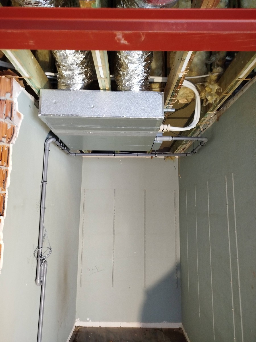 De pre-installatie voor ons project in Schilde is afgerond. Airco, ventilatie en lucht-water warmtepomp zijn volledig voorbereid en klaar voor de volgende fase. Binnenkort starten we met de plaatsing van de vloerverwarming, waarna enkel nog de afwerking volgt.